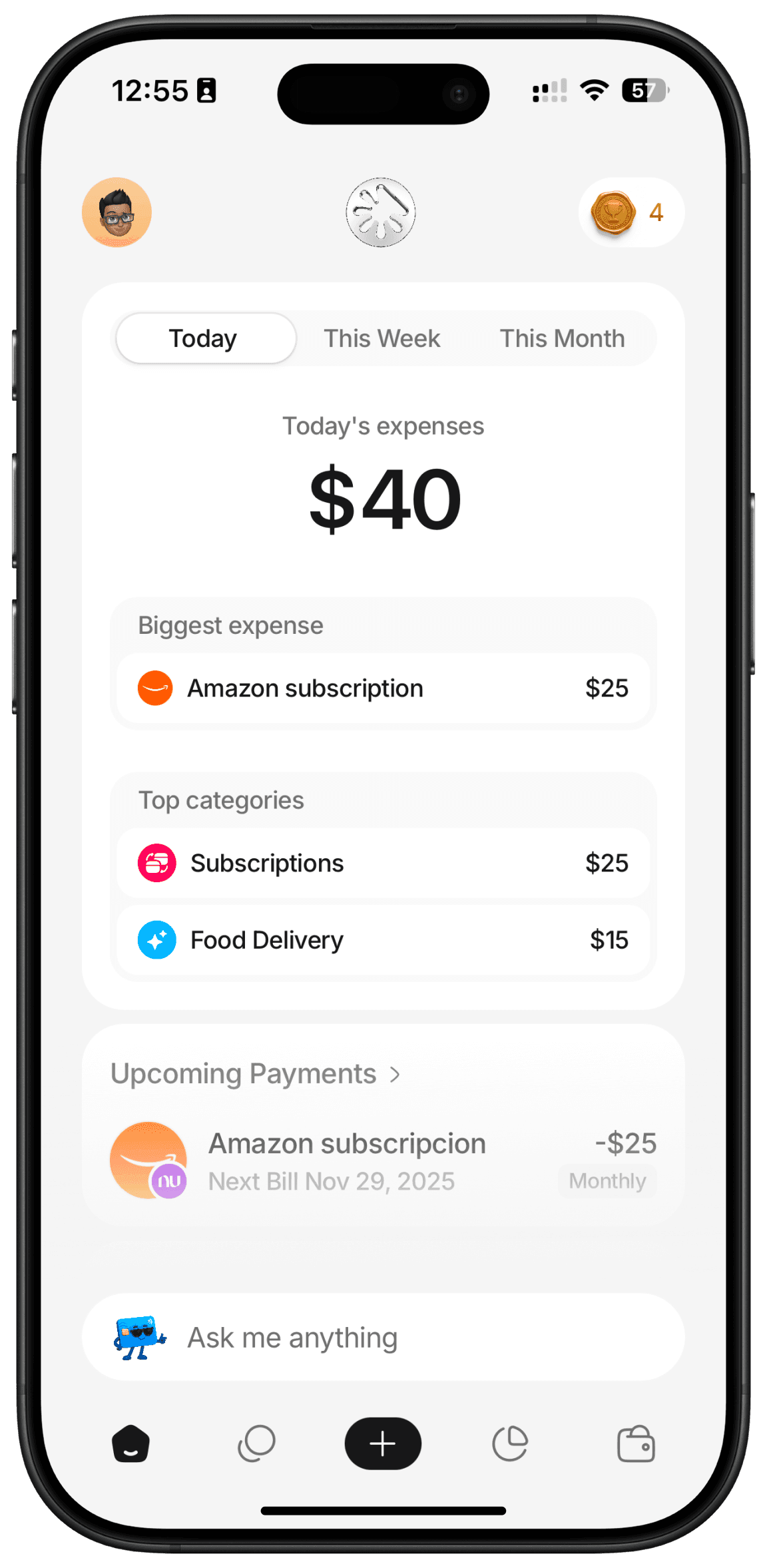 Fina doesn’t just show numbers — it recommends what to do next. Whether it’s saving smarter, paying off debt, or optimizing subscriptions, Fina gives you actionable guidance.